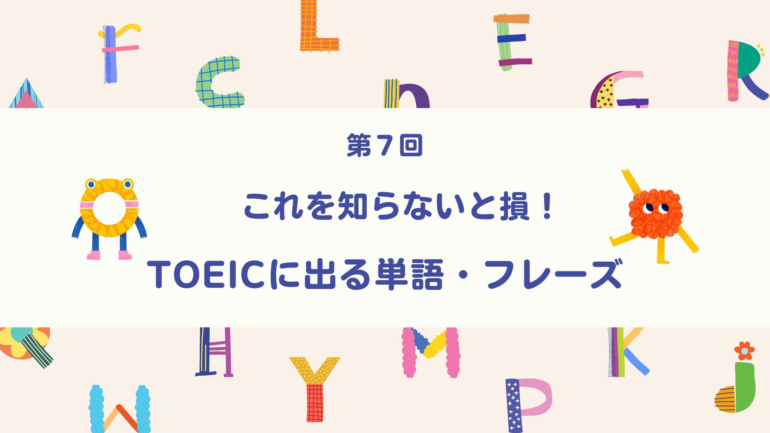 TOEICのスコアアップに必要な単語・フレーズ第7回を紹介しますので、是非覚えてください。